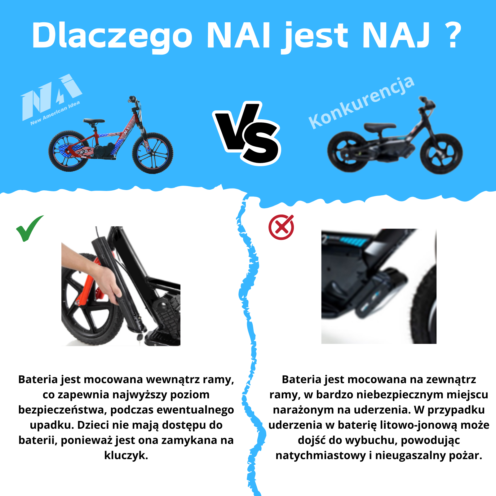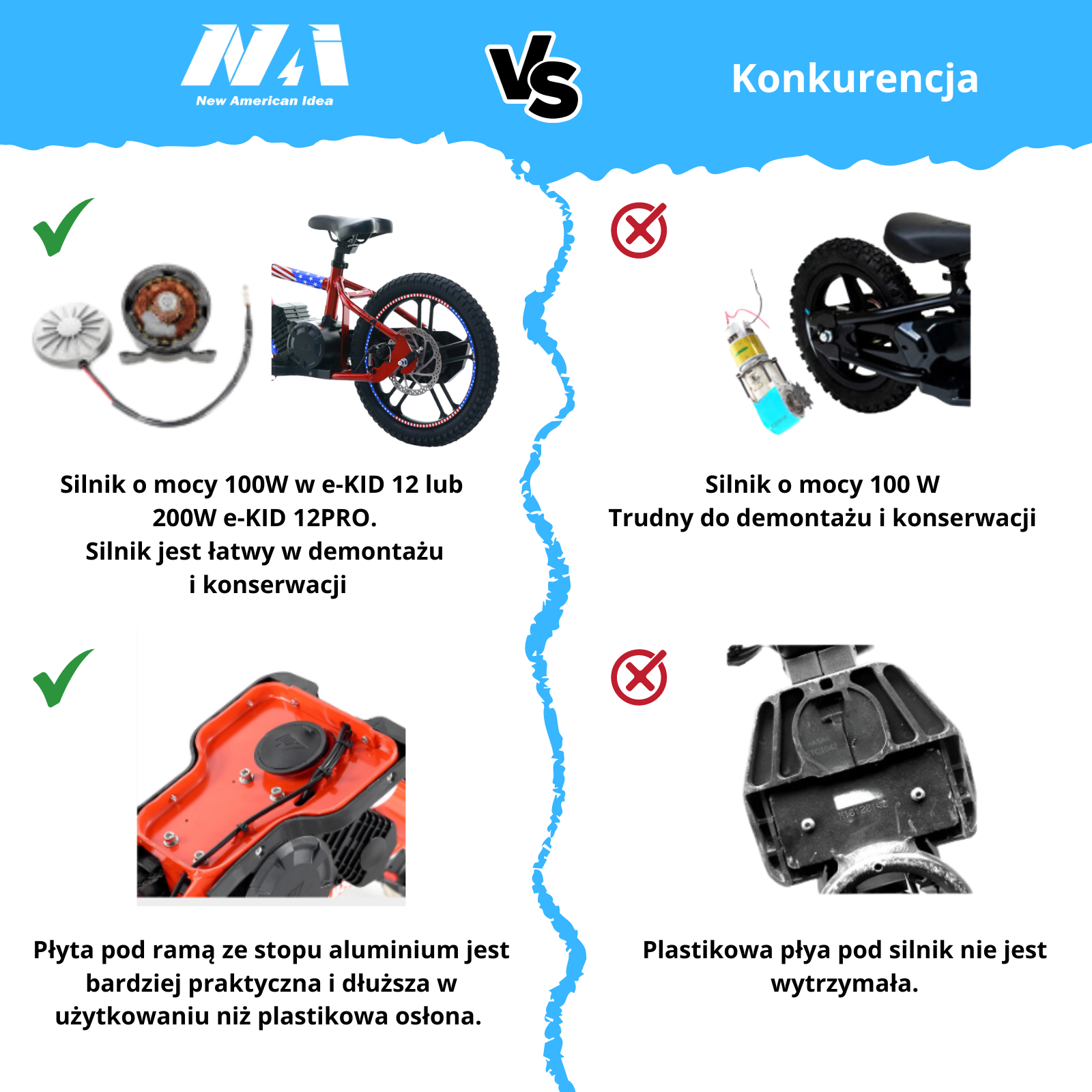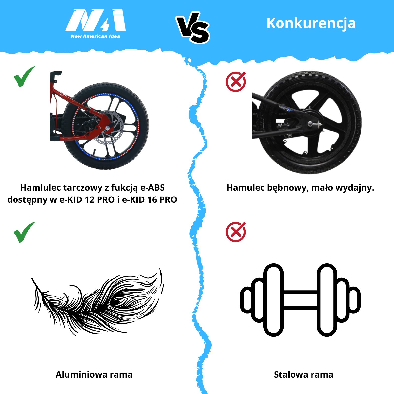 NAI e-KID 16 PRO motocykl elektryczny balansowy dla dzieci, koła 16" z E-ABS