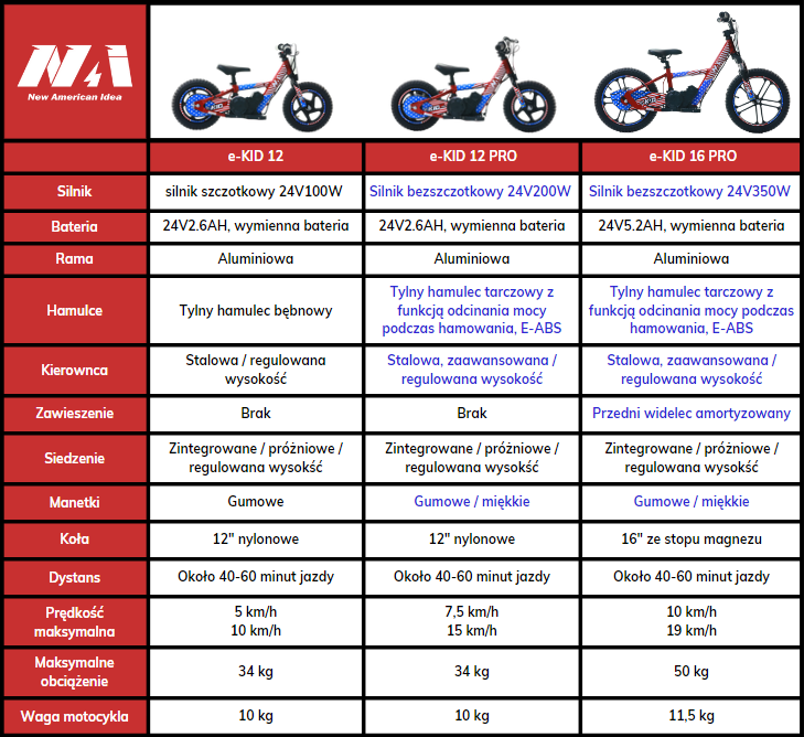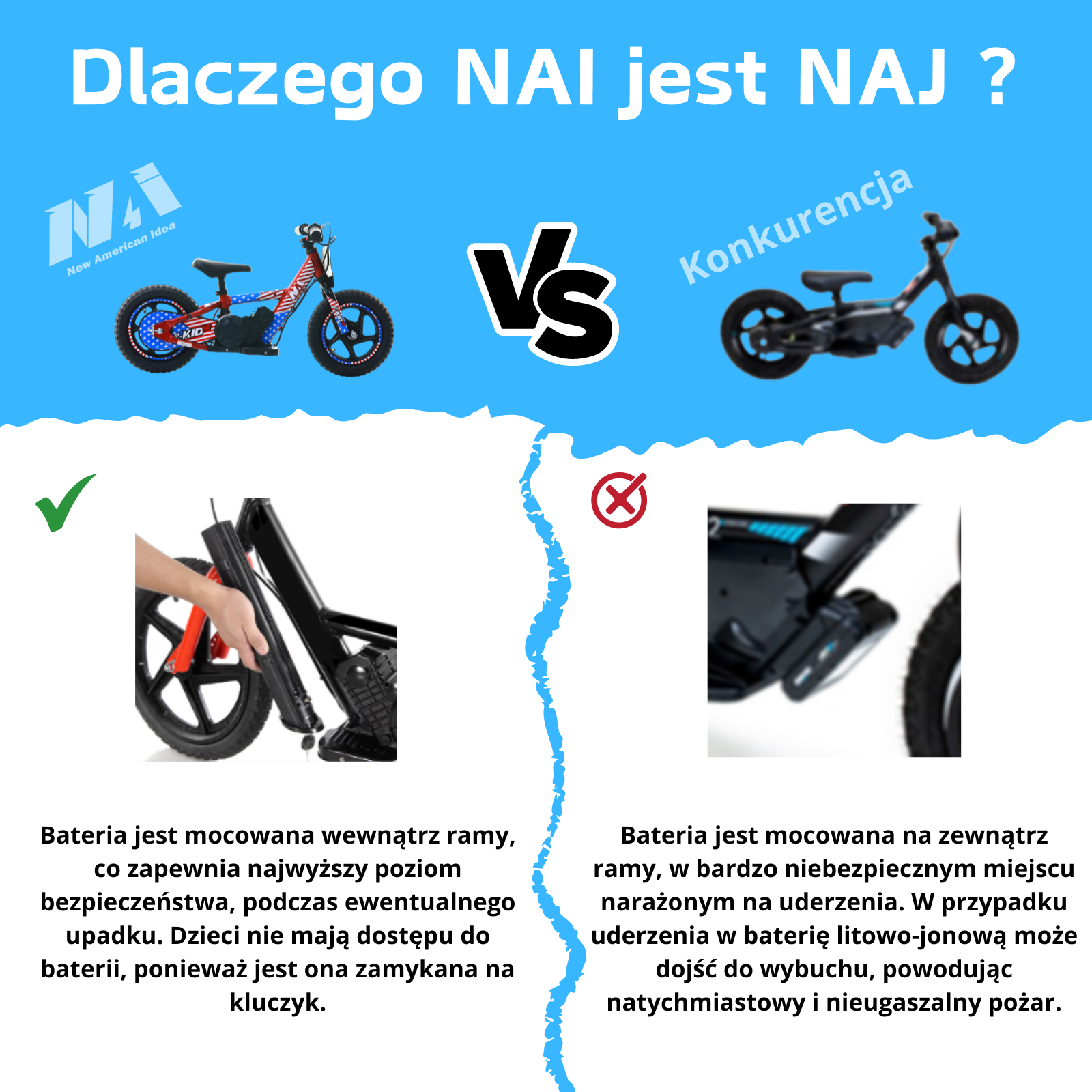 NAI e-KID 12 motocykl elektryczny balansowy dla dzieci, koła 12"